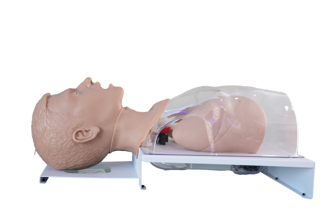 This male model features realistic anatomical structures and supports various operations including oral endotracheal intubation, mask ventilation, thyrocricocentesis and tracheotomy. It offers intelligent alerts for situations such as overly deep intubation, intubation misplacement, and excessive incisor pressure, with the simulation of multiple difficult airway as well.