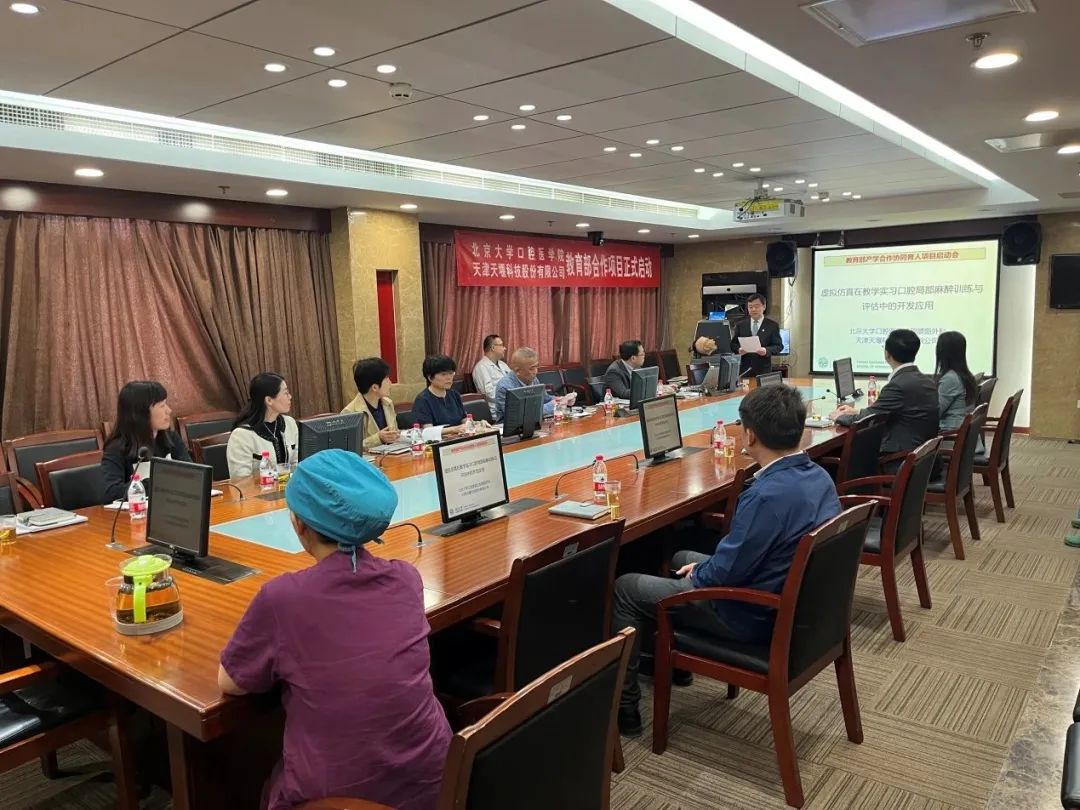 2023年4月24日,在这个春光明媚的日子里,北京大学口腔医院(北大口腔)与星空平台-星空(中国)一站式服务平台 (星空平台-星空(中国)一站式服务平台)召开“虚拟仿真在教学实习口腔局部麻醉训练与评估中的开发应用”项目启动会。北大口腔副院长李铁军、中华口腔医学会副秘书长刘宏伟、北大口腔教育处长董美丽、虚拟仿真教研室主任侯建霞、口腔颌面外科副主任贺洋、星空平台-星空(中国)一站式服务平台总经理刘雁飞、星空平台-星空(中国)一站式服务平台口腔事业部总经理景颖等人出席,在项目总负责人崔念晖主任主持下,双方展开了热烈而有成效的会晤,确定该项目正式启动。