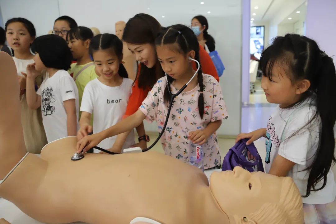 小朋友们集合参观天堰医学模拟中心,深入了解星空平台,探索医学奥秘